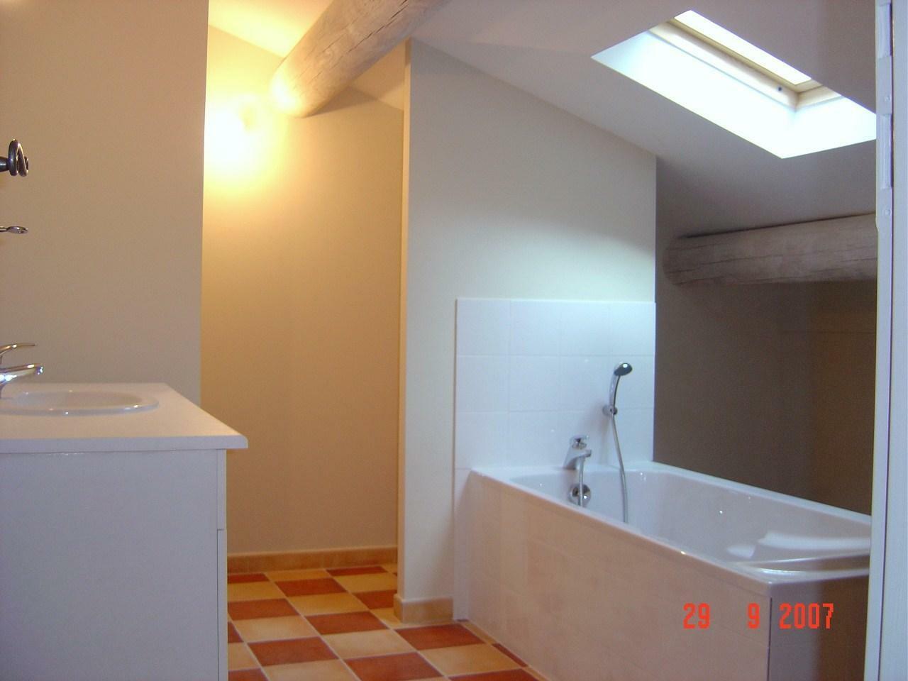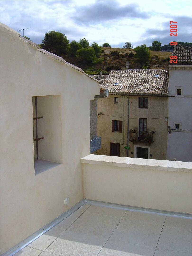 Au 1er étage, un grand séjour avec coin cuisine aménagée, cellier, toilettes. Au 2ème étage, grande chambre avec salle de bains et toilettes, et sa terrasse.