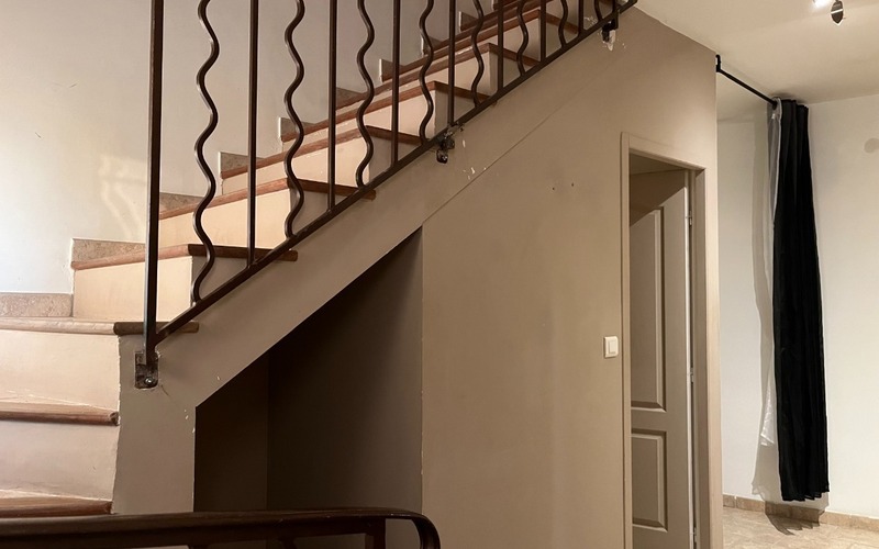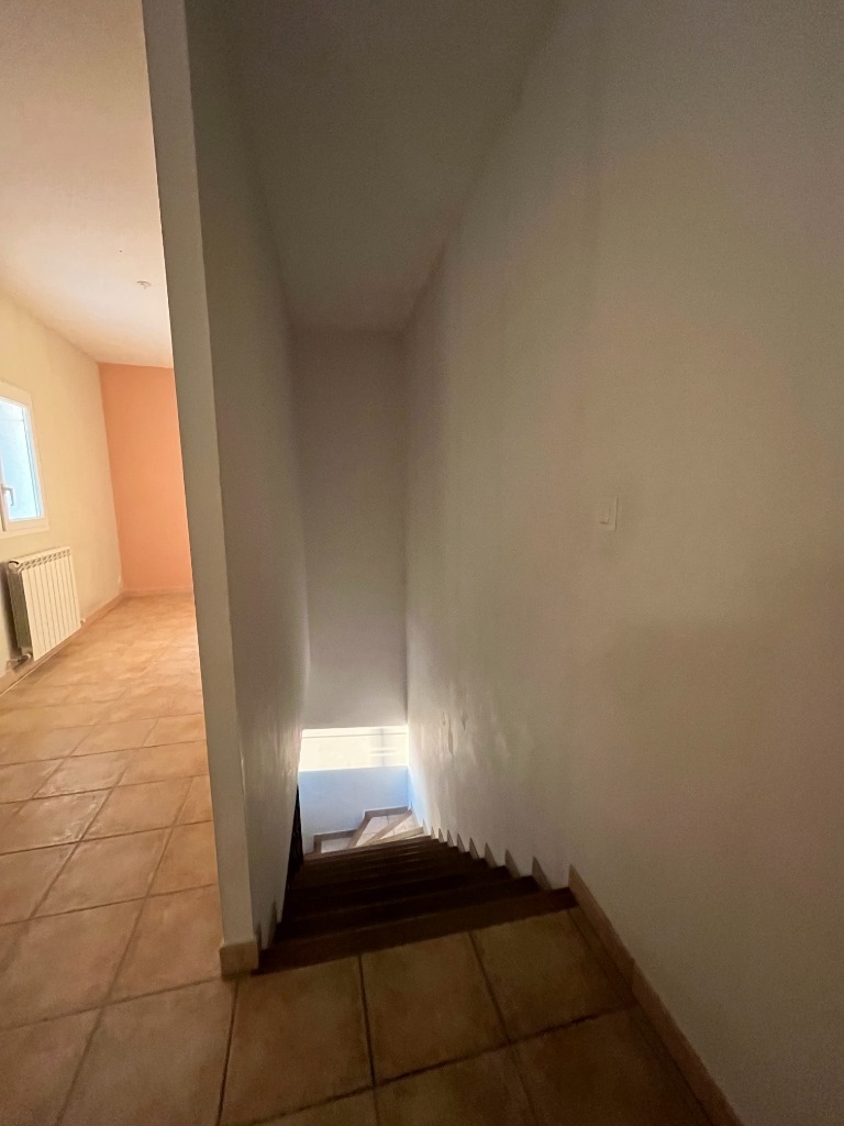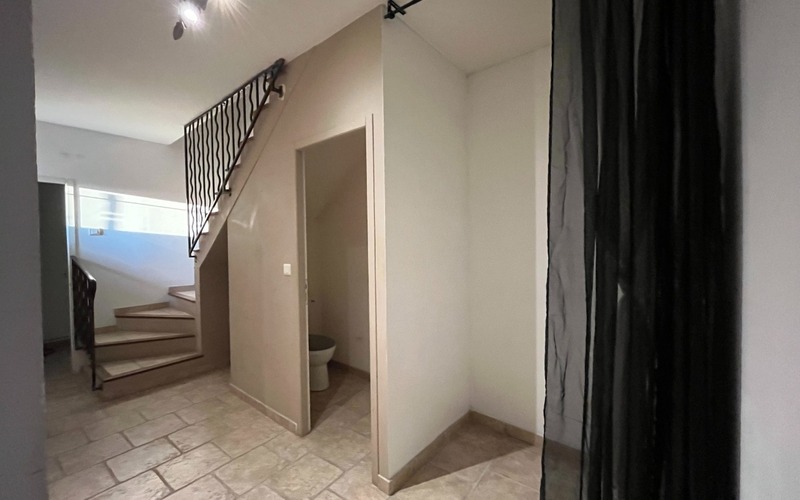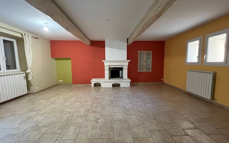 Au RDC séjour avec cheminée de 35 m², cuisine, toilette, buanderie, à l'étage 2 grandes chambres, bureau, salle d'eau, toilette.