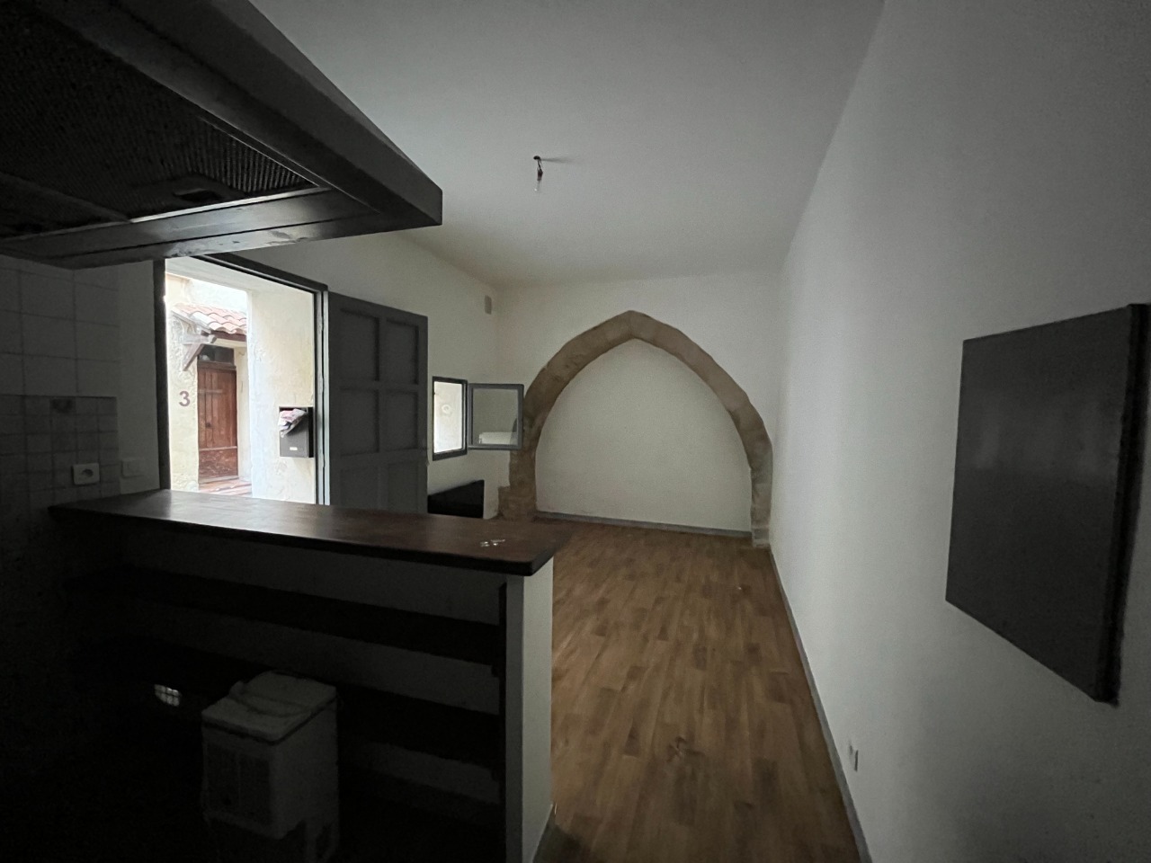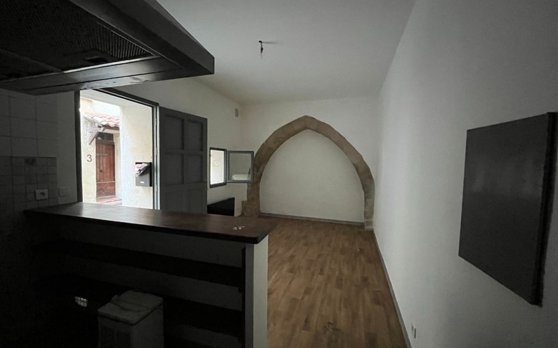 En exclusivité, dans le centre-ville de l'Isle-sur-la-Sorgue, studio en rez-de-chaussée d'une maison de ville, de plain-pied disposant d'une pièce à vivre avec coin cuisine aménagée, salle de bain avec toilette.