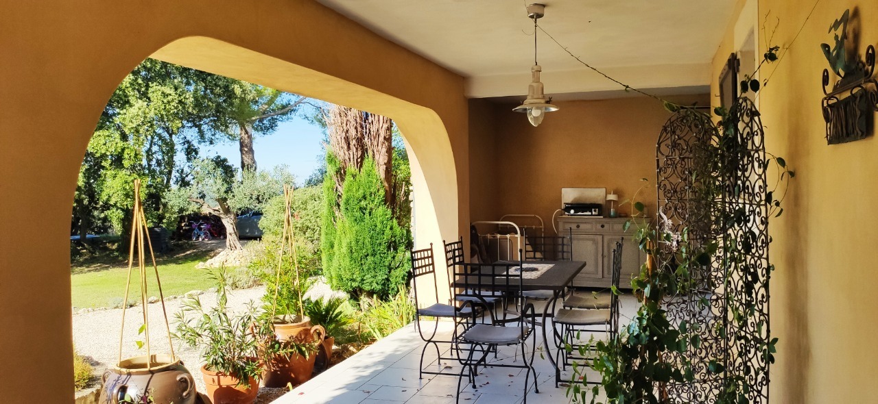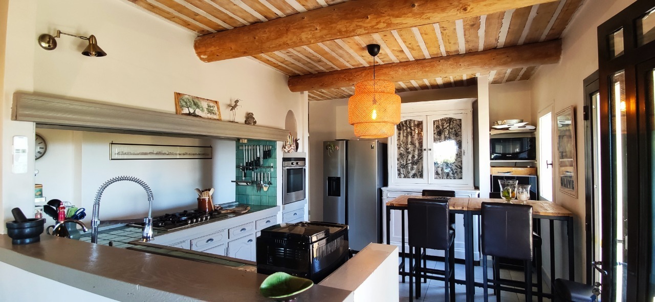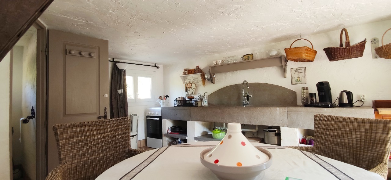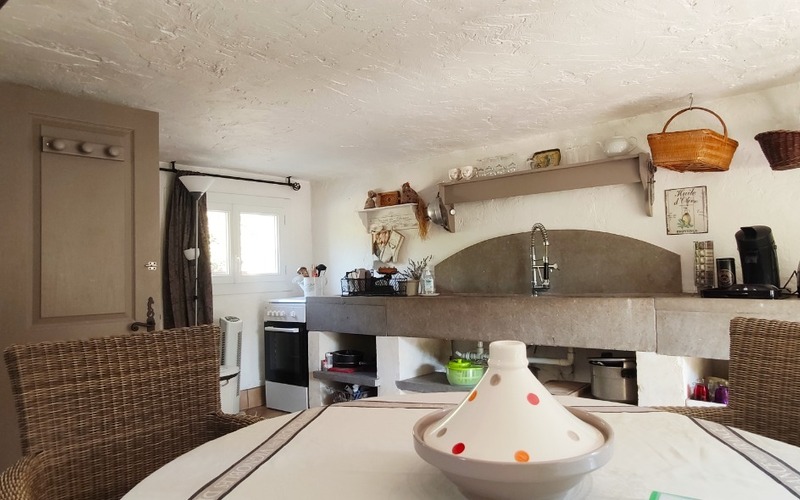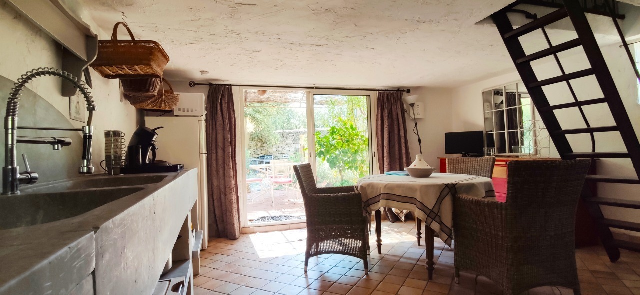 Vous bénéficiez en plus d'un Mazet indépendant de 39 m² se composant au rez-de-chaussée, d'un séjour lumineux avec cuisine ouverte et équipée.