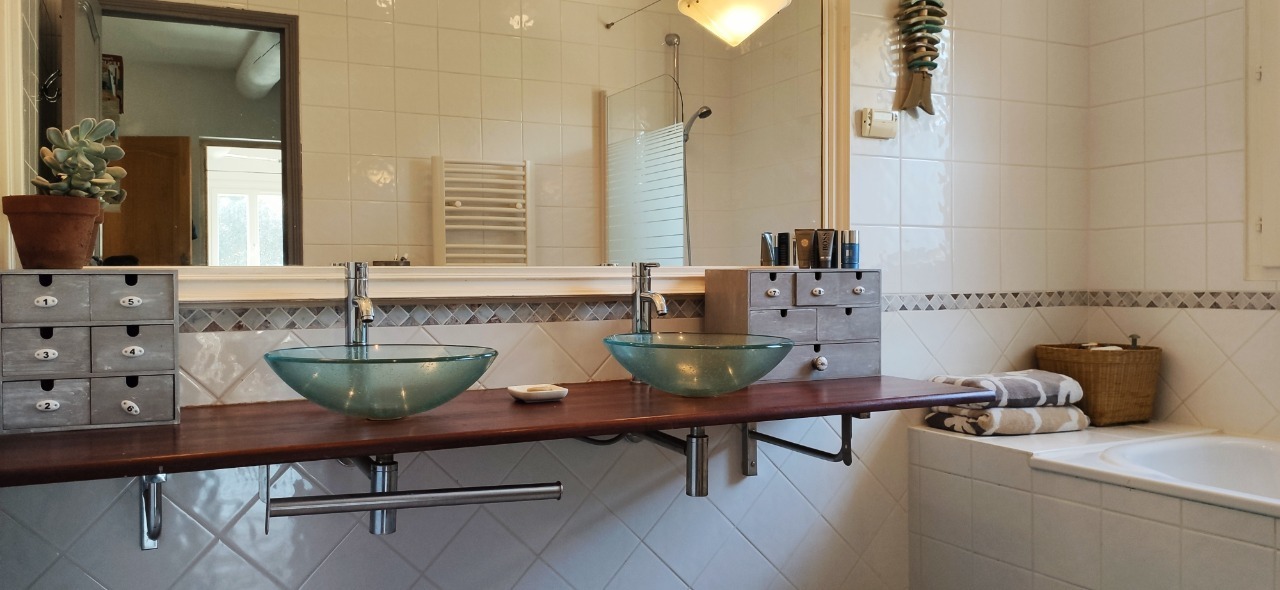 Cette maison se compose au rez-de-chaussée de 2 gîtes donc le 1er gîte Luberon se composant d'un séjour, cuisine équipée, deux chambres dont une de 21 m² et 13 m² et salle de bain.